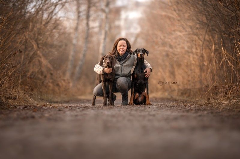 Seit April 2018 lebe ich zusammen mit meiner Dobermannhündin Arya und hab meine zweite Leidenschaft entdeckt: die Arbeit mit Tieren, insbesondere mit Hunden. Durch den nicht ganz so einfachen Start in die Hundeerziehung habe ich im Sommer 2018 den Hundetrainer Hans Schlegel kennengelernt und durch ihn eine neue, spannende Welt entdeckt. Es hat mich so gepackt, dass ich mich im Januar 2021 entschied die Ausbildung zur Hundefachexpertin anzufangen, um ab Januar 2022 in diesem Business Fuss zu fassen.